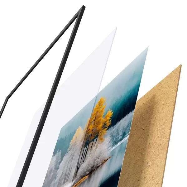 Il poster è composto da cornice, plexiglass, immagine stampata e supporto in truciolato. Il poster può essere immediatamente appeso alla parete grazie ai supporti sul retro.