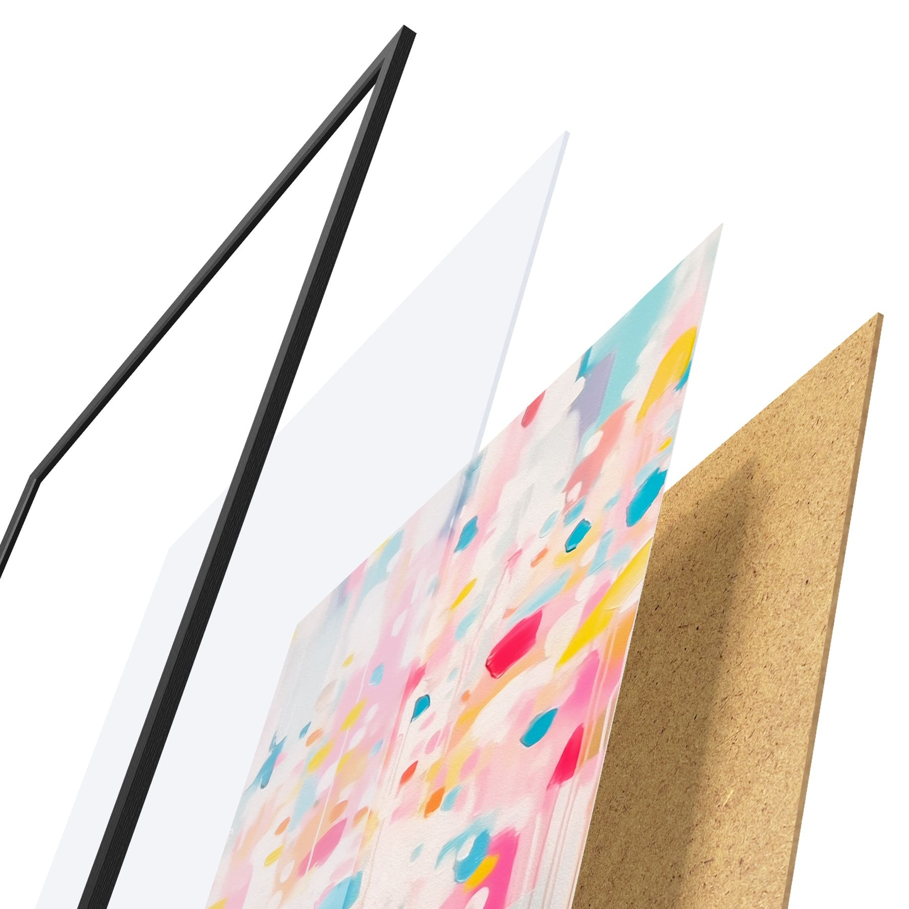 Il poster è composto da cornice, plexiglass, immagine stampata e supporto in truciolato. Il poster può essere immediatamente appeso alla parete grazie ai supporti sul retro.