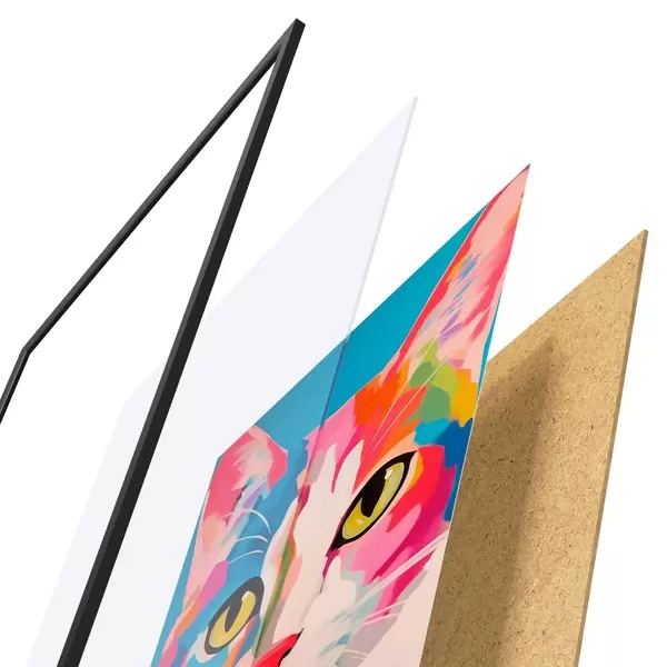 Il poster è composto da cornice, plexiglass, immagine stampata e supporto in truciolato. Il poster può essere immediatamente appeso alla parete grazie ai supporti sul retro.