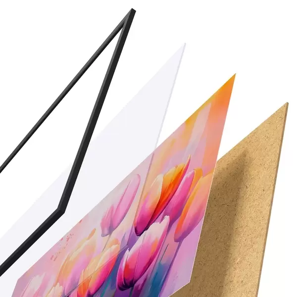 Il poster è composto da cornice, plexiglass, immagine stampata e supporto in truciolato. Il poster può essere immediatamente appeso alla parete grazie ai supporti sul retro.