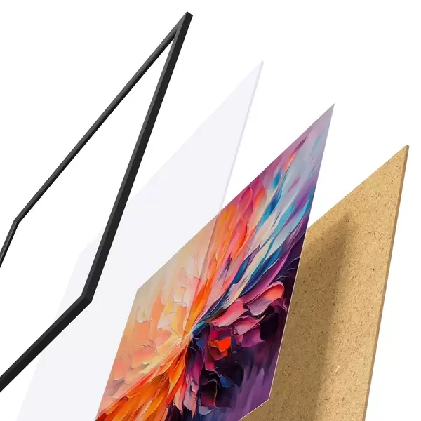 Il poster è composto da cornice, plexiglass, immagine stampata e supporto in truciolato. Il poster può essere immediatamente appeso alla parete grazie ai supporti sul retro.