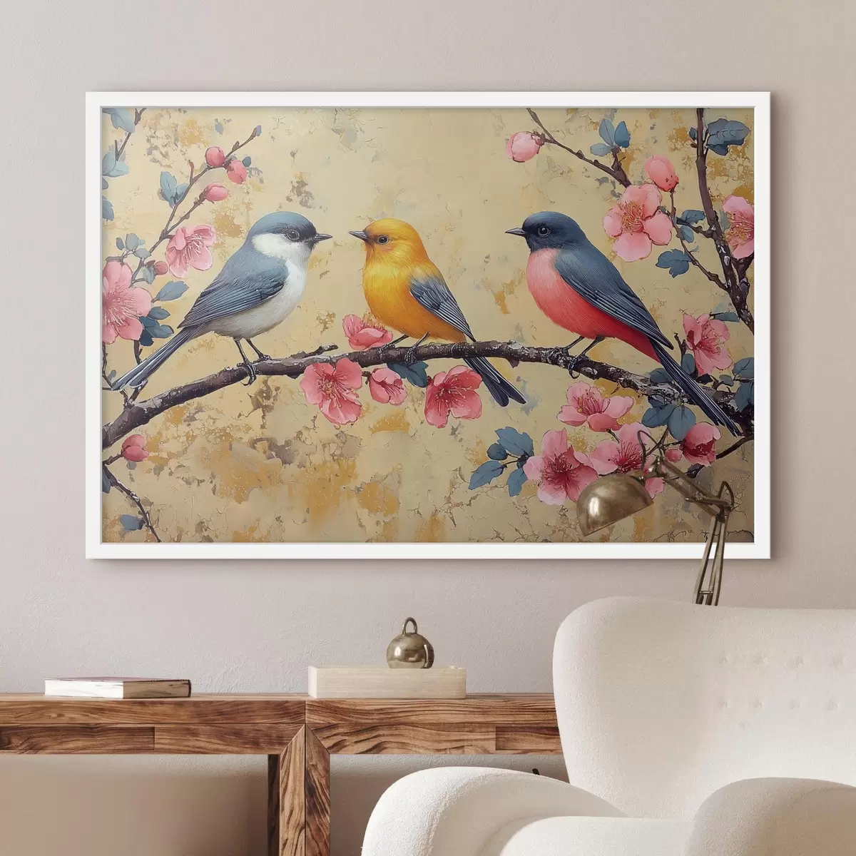 Poster Passeri su un ramo di sakura nello stile della pittura a olio Nr f41835