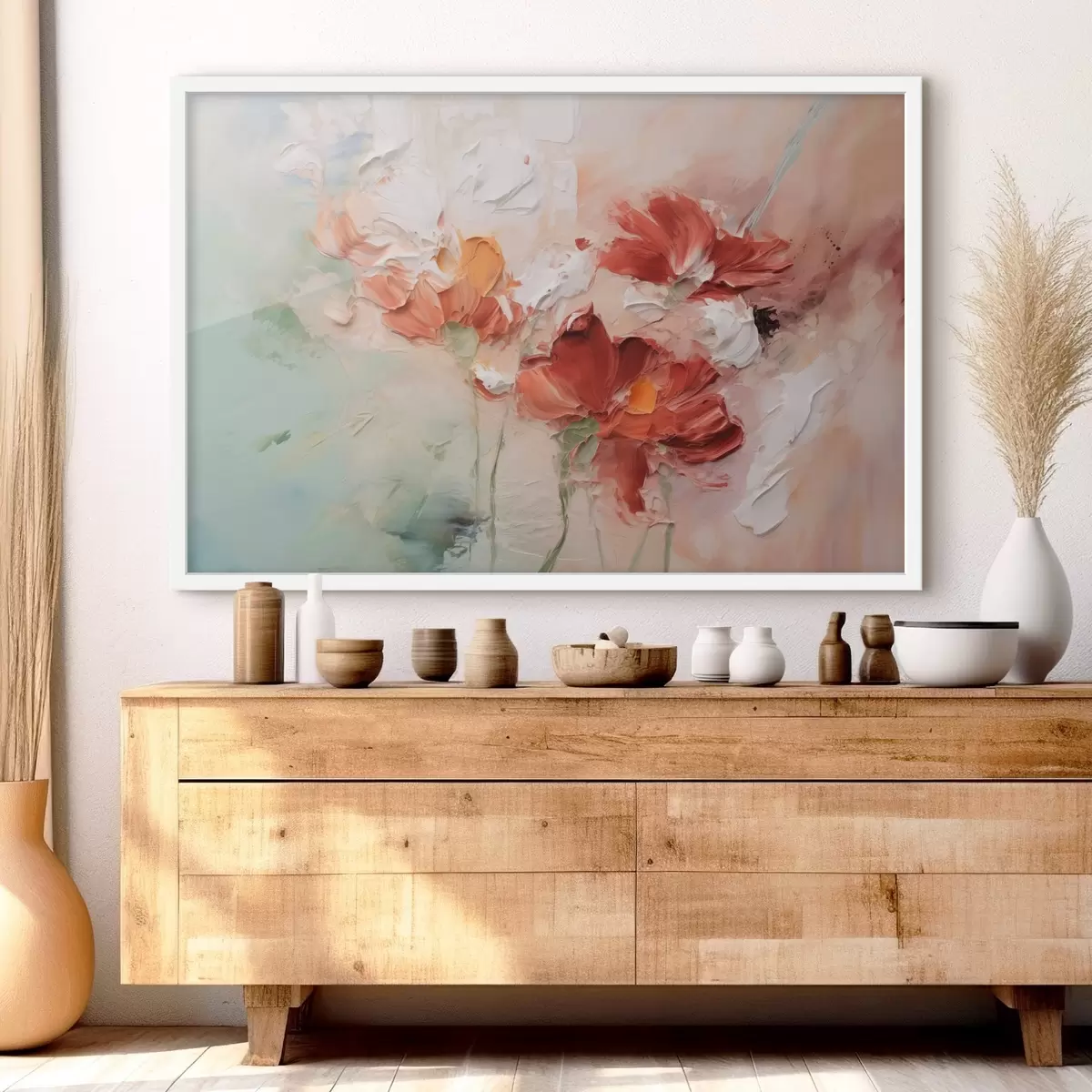 Poster Composizione astratta di fiori, imitazione della pennellata, sfumature verdi e rosse Nr f41852