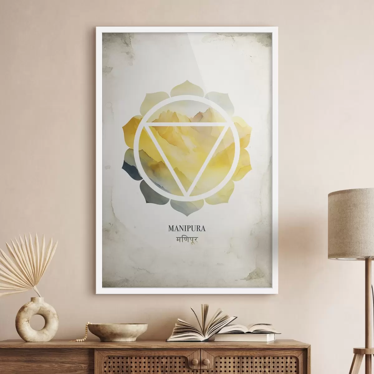Poster Manipura chakra, chakra giallo, esoterico, meditazione, buddismo, montagne in stile acquerello Nr f41882