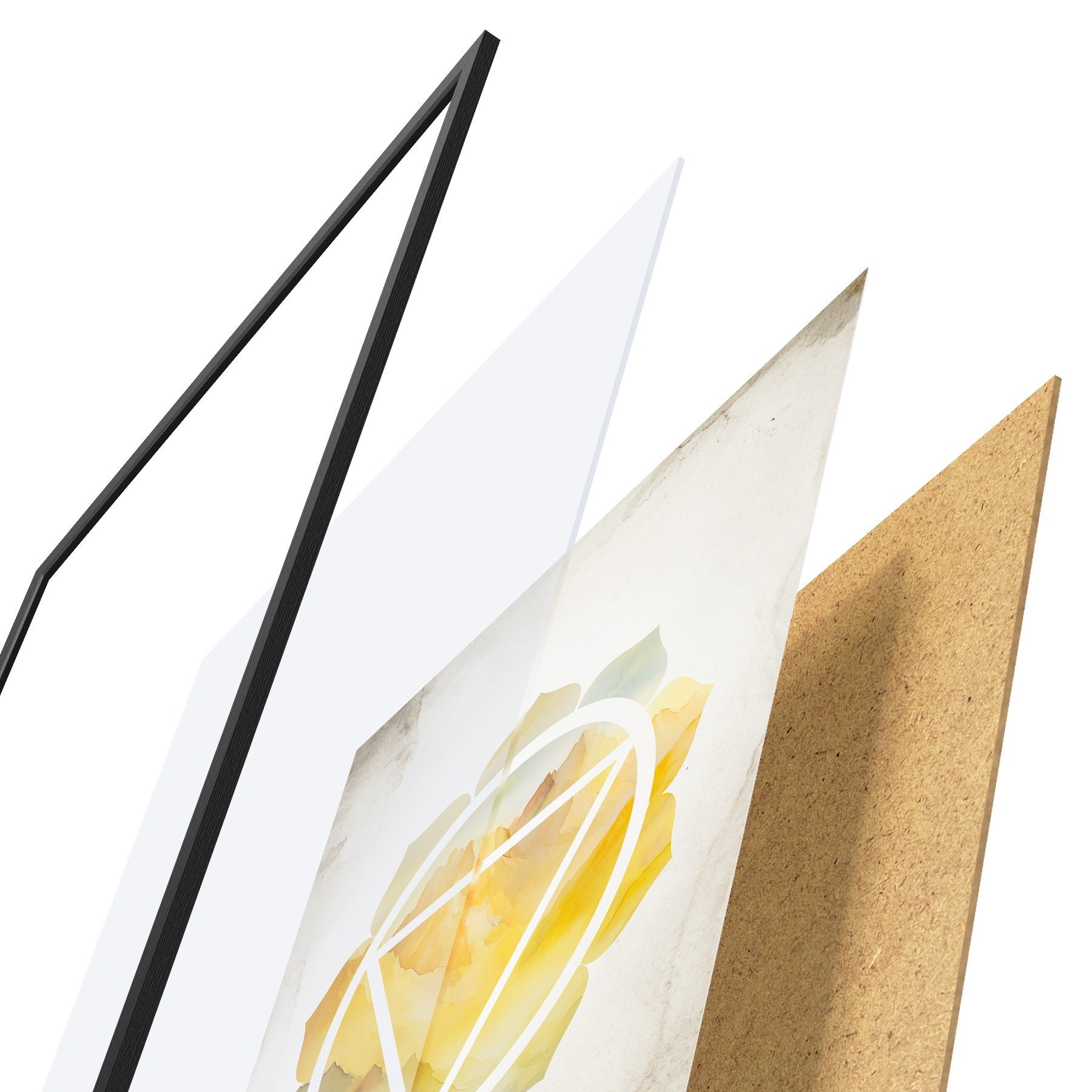 Il poster è composto da cornice, plexiglass, immagine stampata e supporto in truciolato. Il poster può essere immediatamente appeso alla parete grazie ai supporti sul retro.