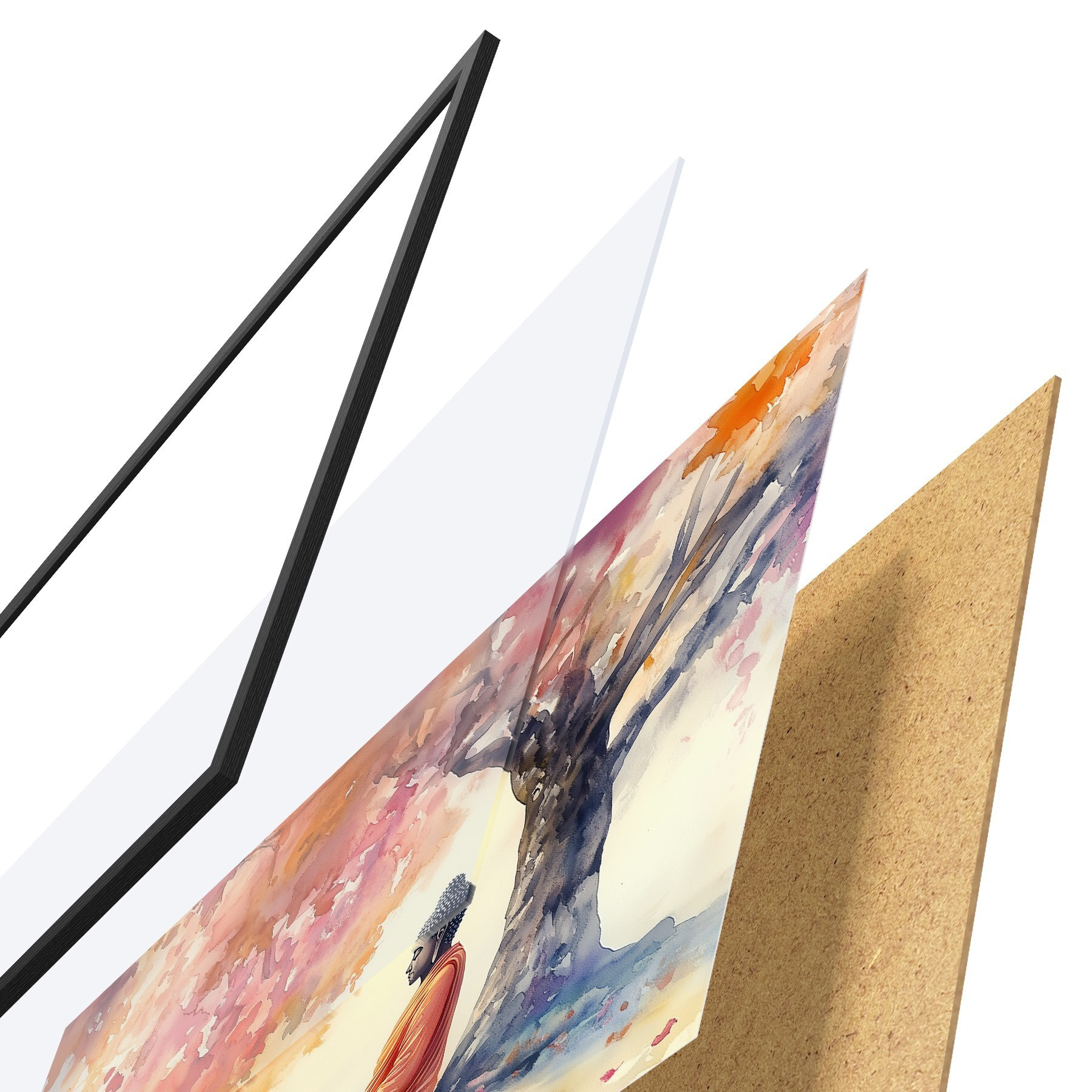 Poster Buddha in meditazione sotto l'albero, stile acquerello, autunno, esoterico Nr f41887