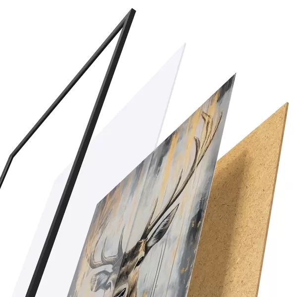 Il poster è composto da cornice, plexiglass, immagine stampata e supporto in truciolato. Il poster può essere immediatamente appeso alla parete grazie ai supporti sul retro.