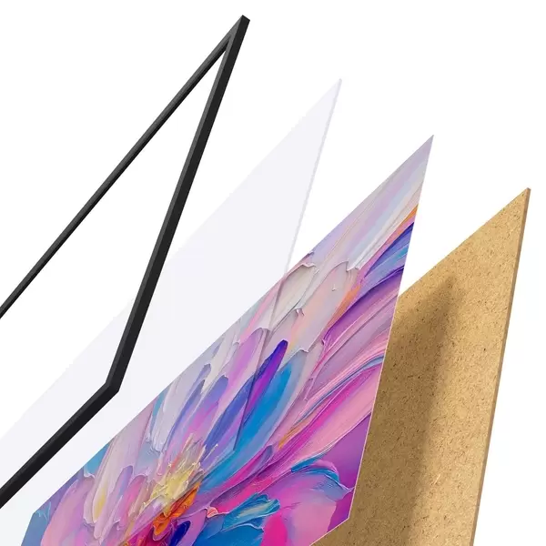 Il poster è composto da cornice, plexiglass, immagine stampata e supporto in truciolato. Il poster può essere immediatamente appeso alla parete grazie ai supporti sul retro.