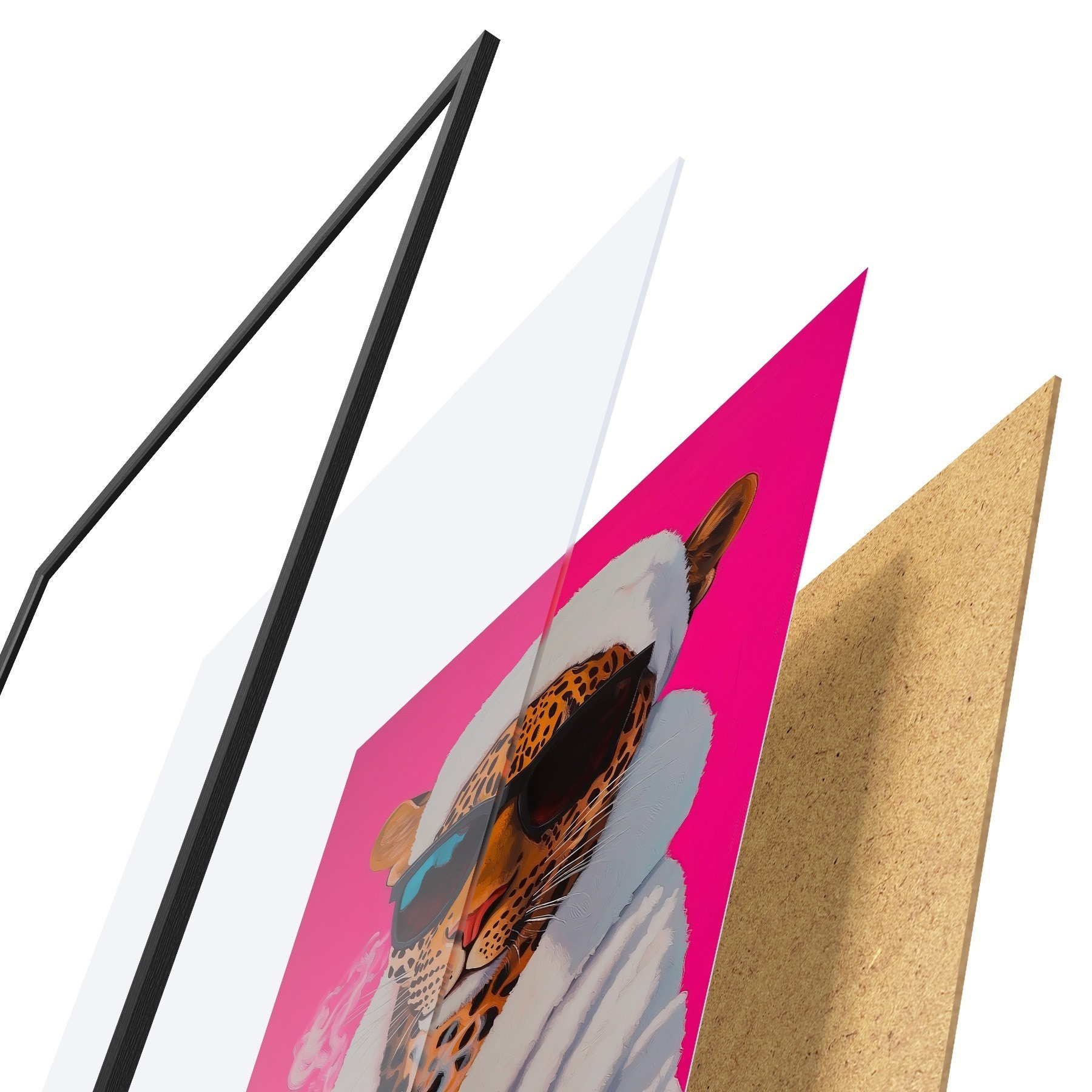 Il poster è composto da cornice, plexiglass, immagine stampata e supporto in truciolato. Il poster può essere immediatamente appeso alla parete grazie ai supporti sul retro.