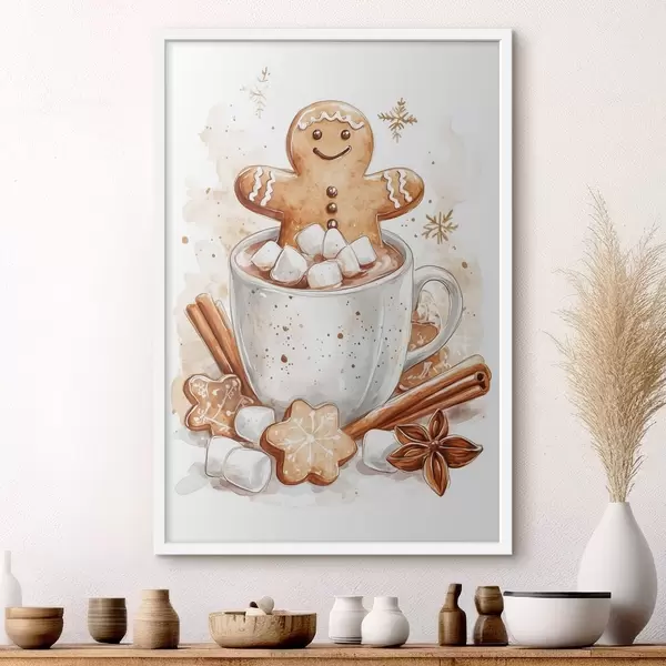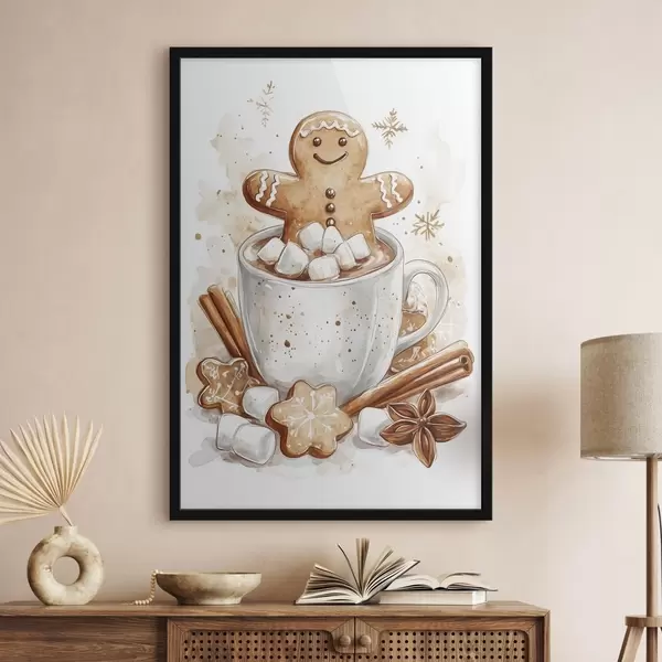 Poster Omini di pan di zenzero nella tazza di caffè, cannella, marshmallow, stile acquerello, beige Nr f41948