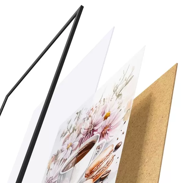 Il poster è composto da cornice, plexiglass, immagine stampata e supporto in truciolato. Il poster può essere immediatamente appeso alla parete grazie ai supporti sul retro.