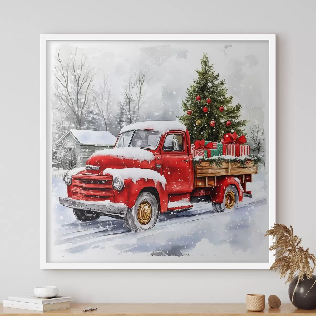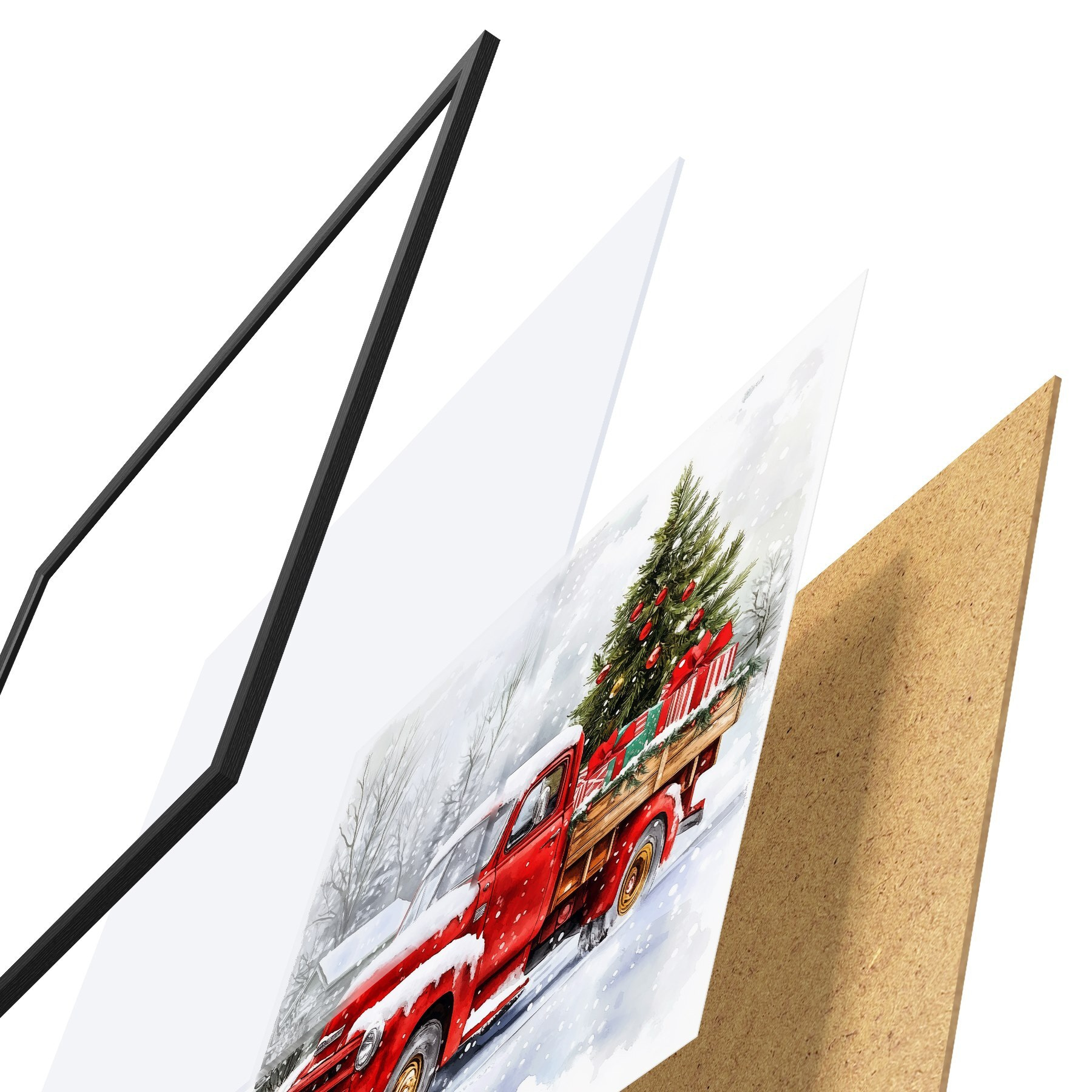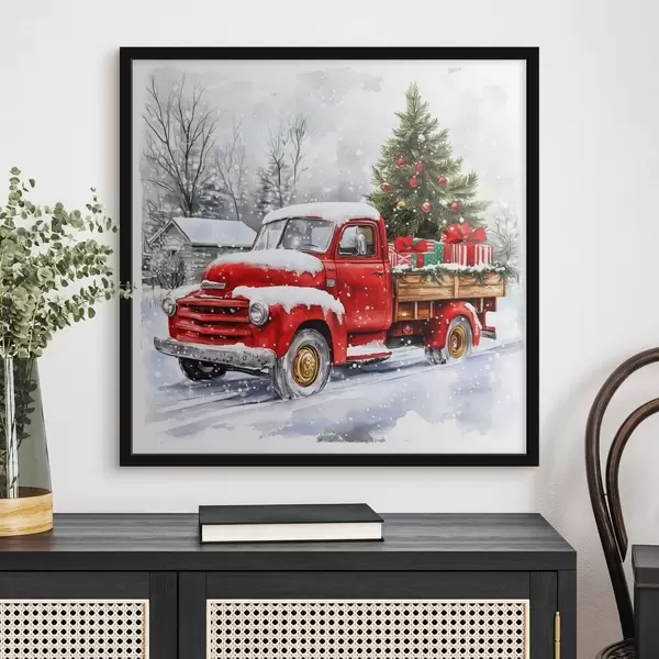 Poster Un'auto di Natale con albero e regali in un clima innevato Nr f41968