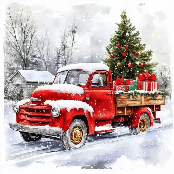 Poster Un'auto di Natale con albero e regali in un clima innevato Nr f41968