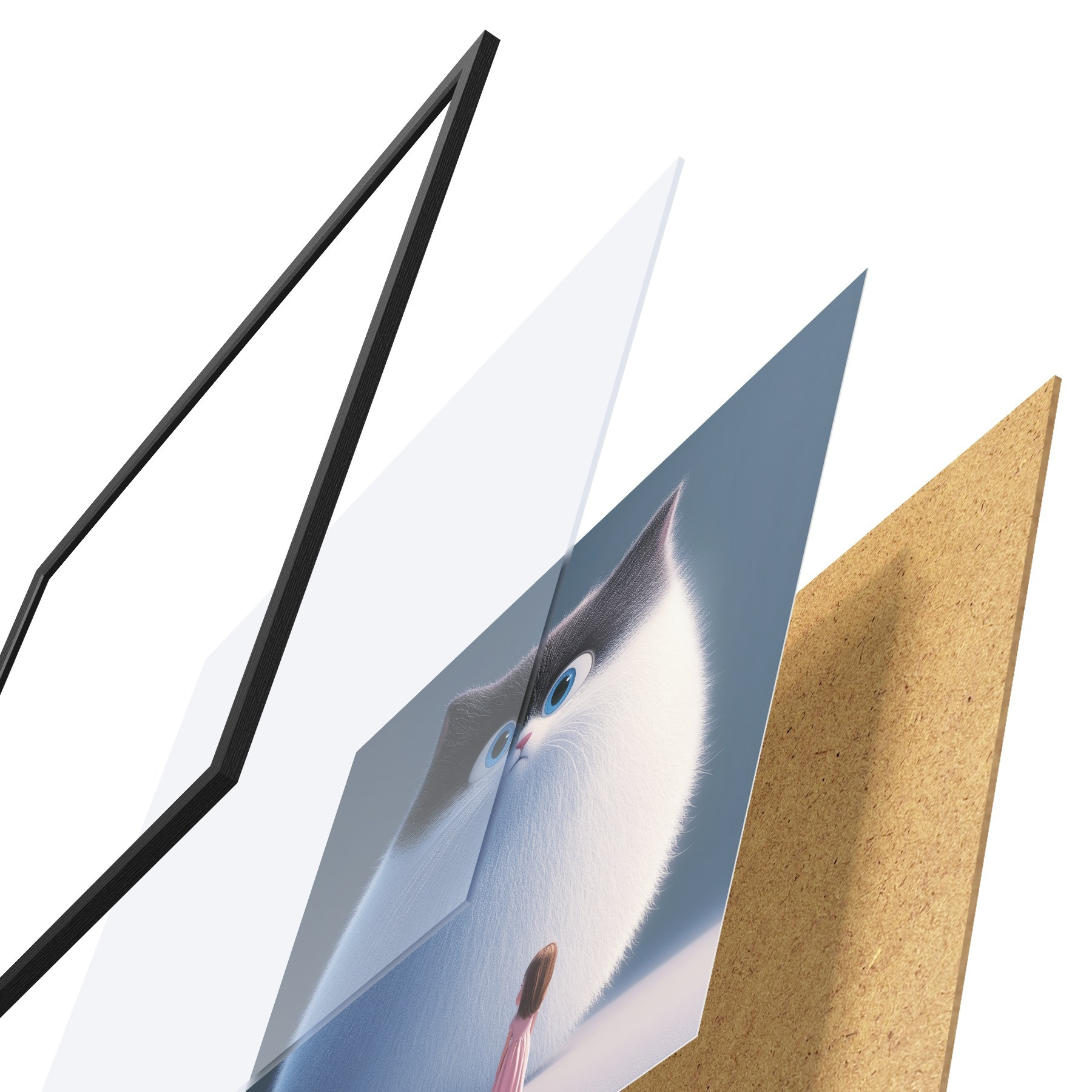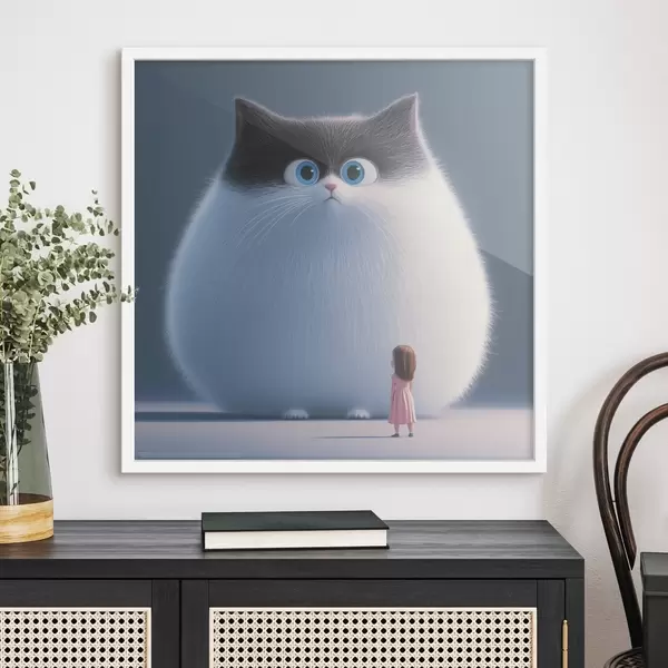 Poster Un gatto peloso sorpreso con una ragazza in stile illustrazione Nr f41974