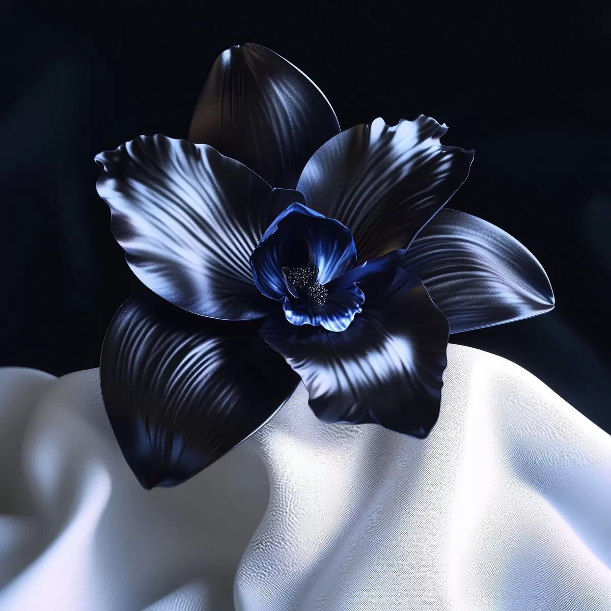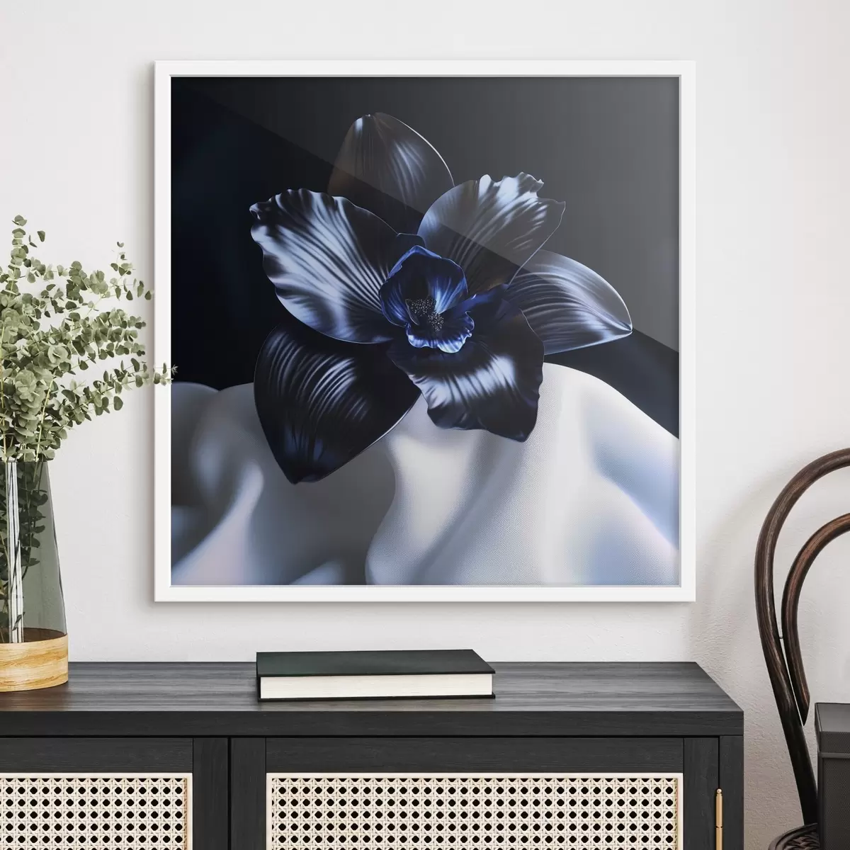 Poster Un'orchidea nera su uno sfondo di seta f41976