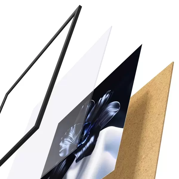 Il poster è composto da cornice, plexiglass, immagine stampata e supporto in truciolato. Il poster può essere immediatamente appeso alla parete grazie ai supporti sul retro.