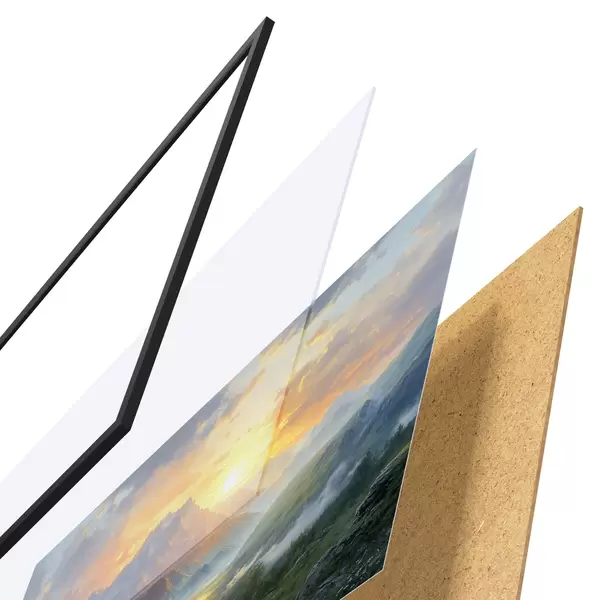 Il poster è composto da cornice, plexiglass, immagine stampata e supporto in truciolato. Il poster può essere immediatamente appeso alla parete grazie ai supporti sul retro.