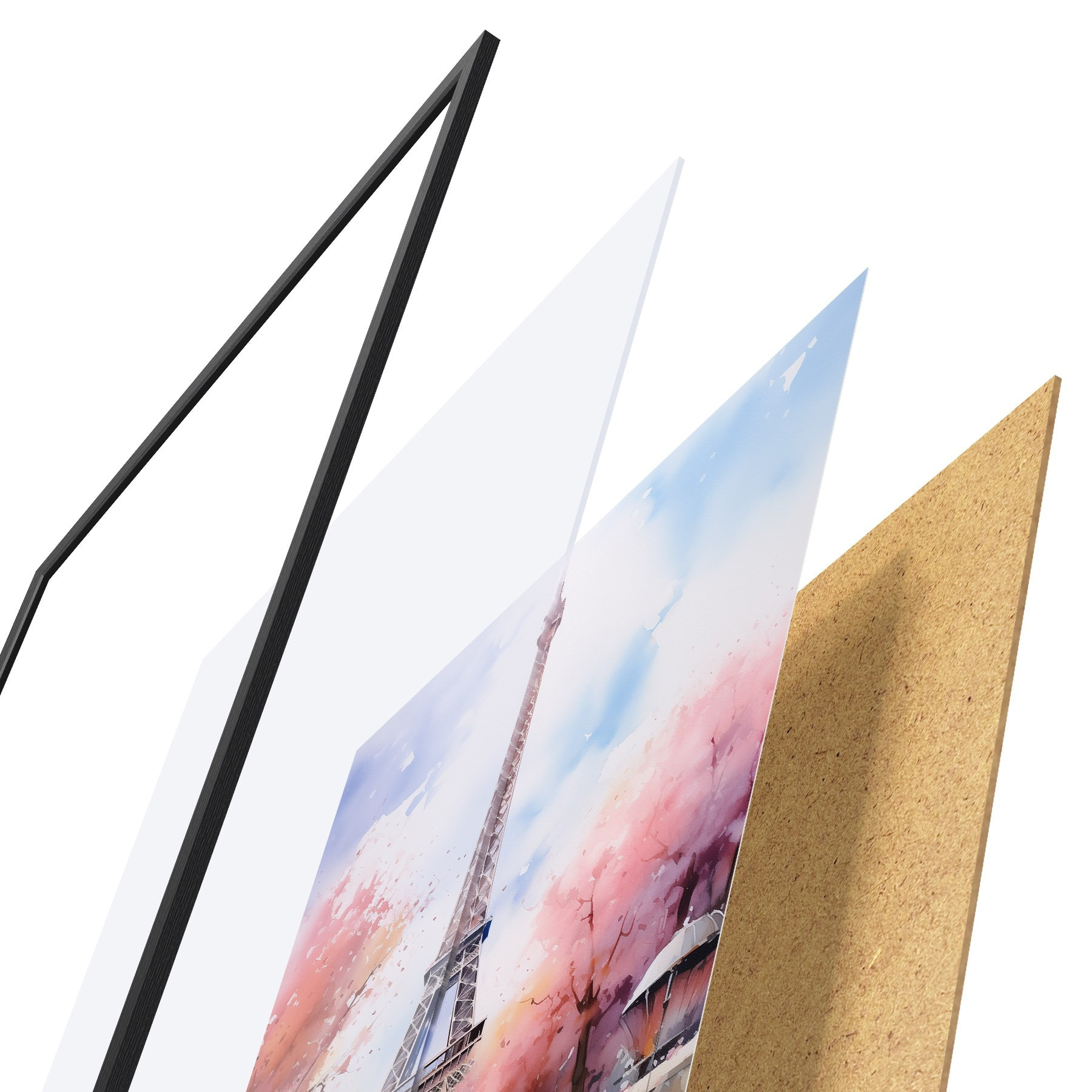 Il poster è composto da cornice, plexiglass, immagine stampata e supporto in truciolato. Il poster può essere immediatamente appeso alla parete grazie ai supporti sul retro.
