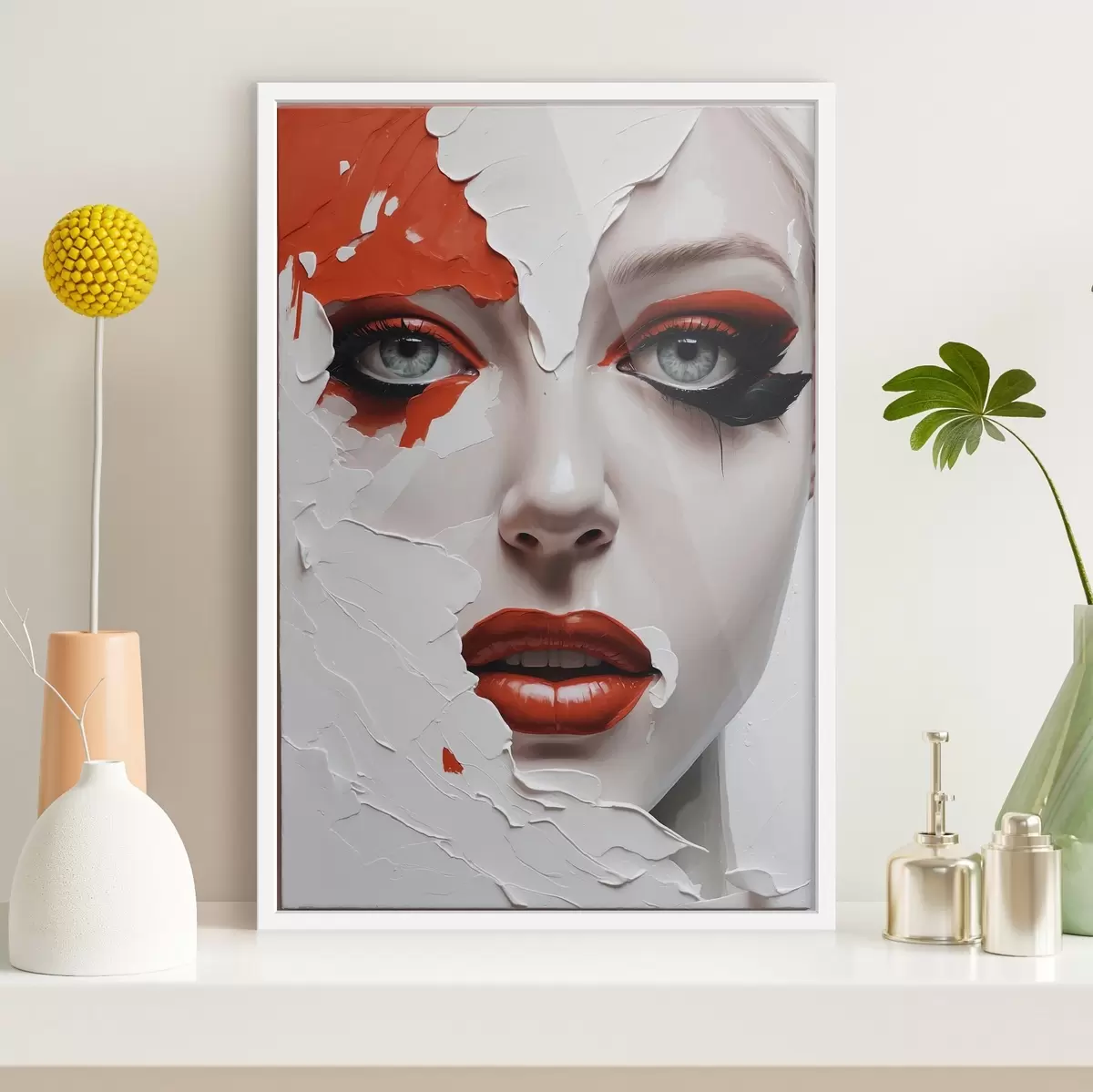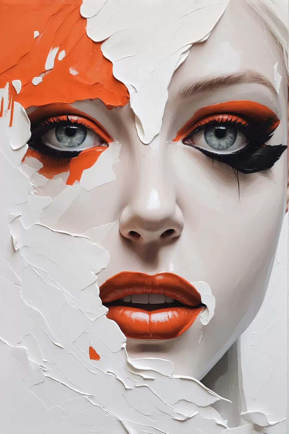 Poster Volto di ragazza con vernice bianca e arancione Nr f42092