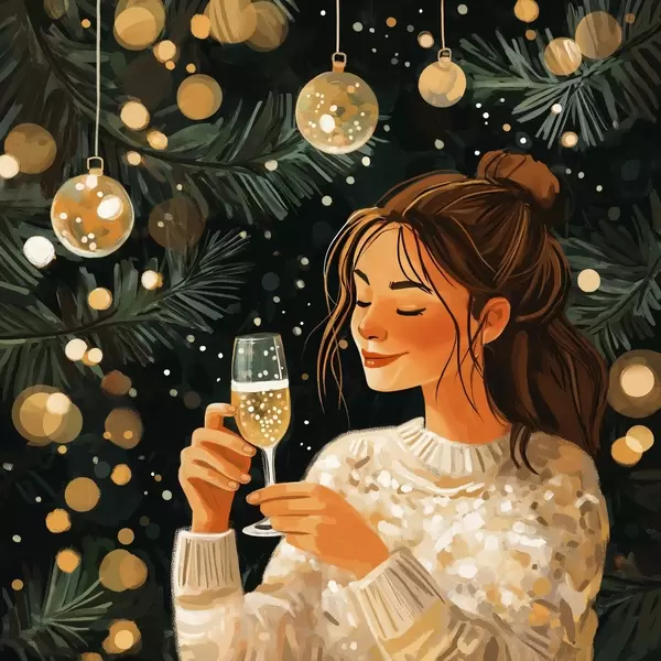 Poster Una ragazza con un bicchiere di champagne a Capodanno f42102