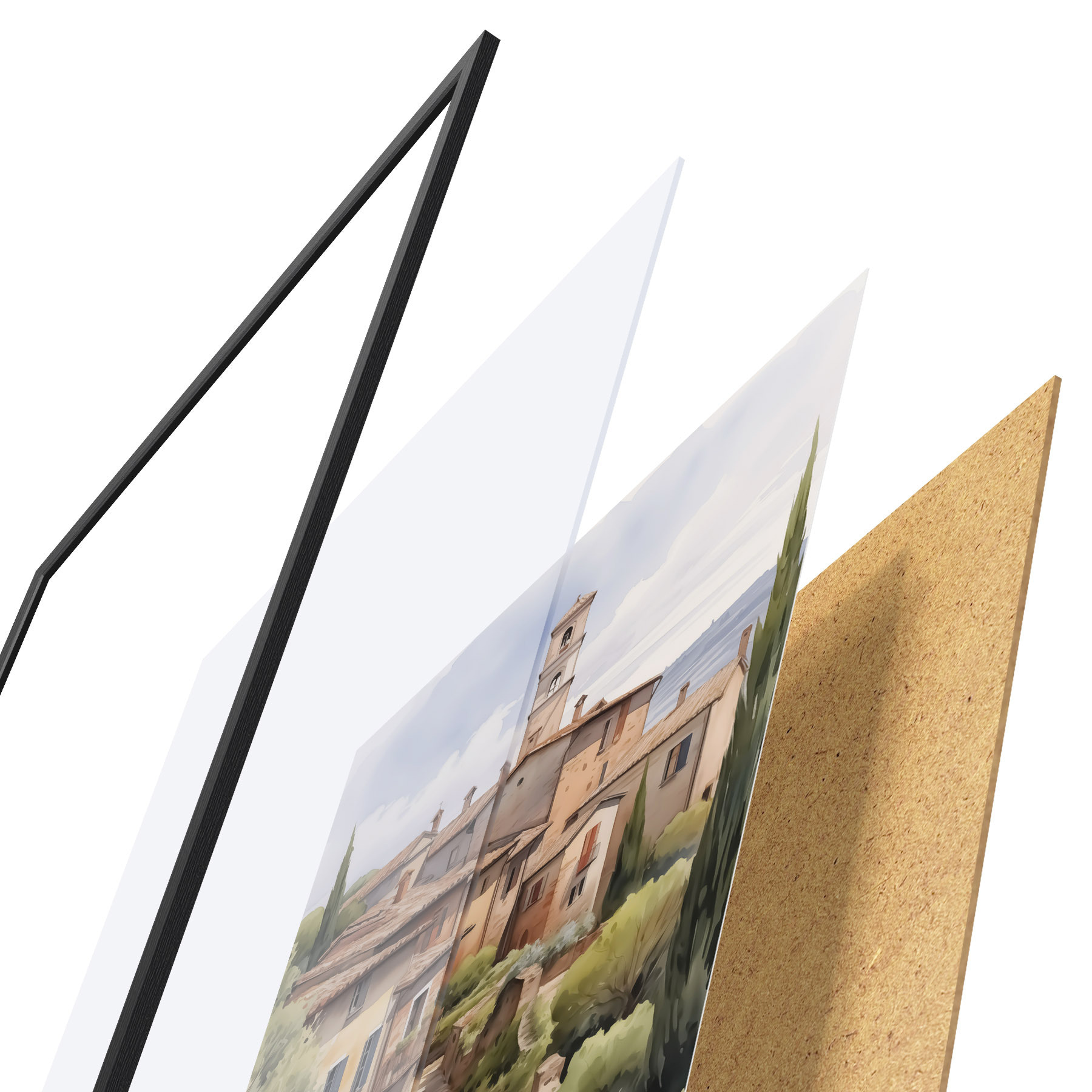 Il poster è composto da cornice, plexiglass, immagine stampata e supporto in truciolato. Il poster può essere immediatamente appeso alla parete grazie ai supporti sul retro.