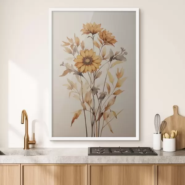 Poster Rami con fiori gialli imitazione di pittura ad acquerello Nr f42142