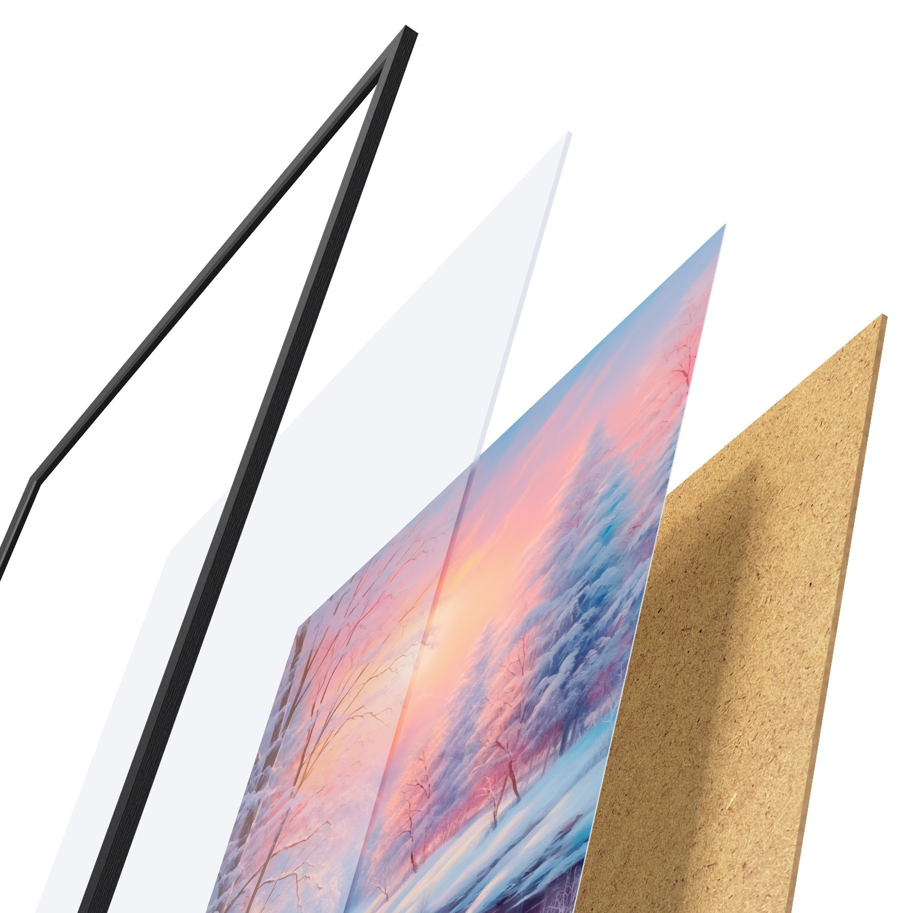 Il poster è composto da cornice, plexiglass, immagine stampata e supporto in truciolato. Il poster può essere immediatamente appeso alla parete grazie ai supporti sul retro.