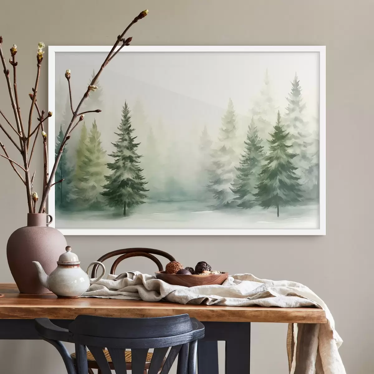 Poster Foresta nebbiosa di abeti f42154