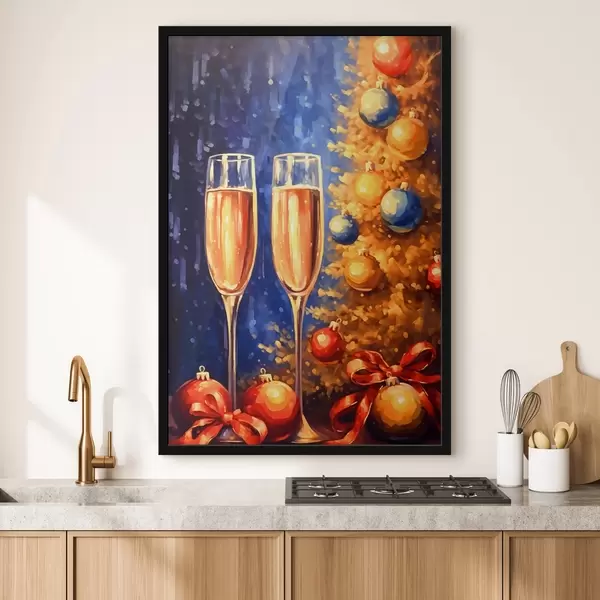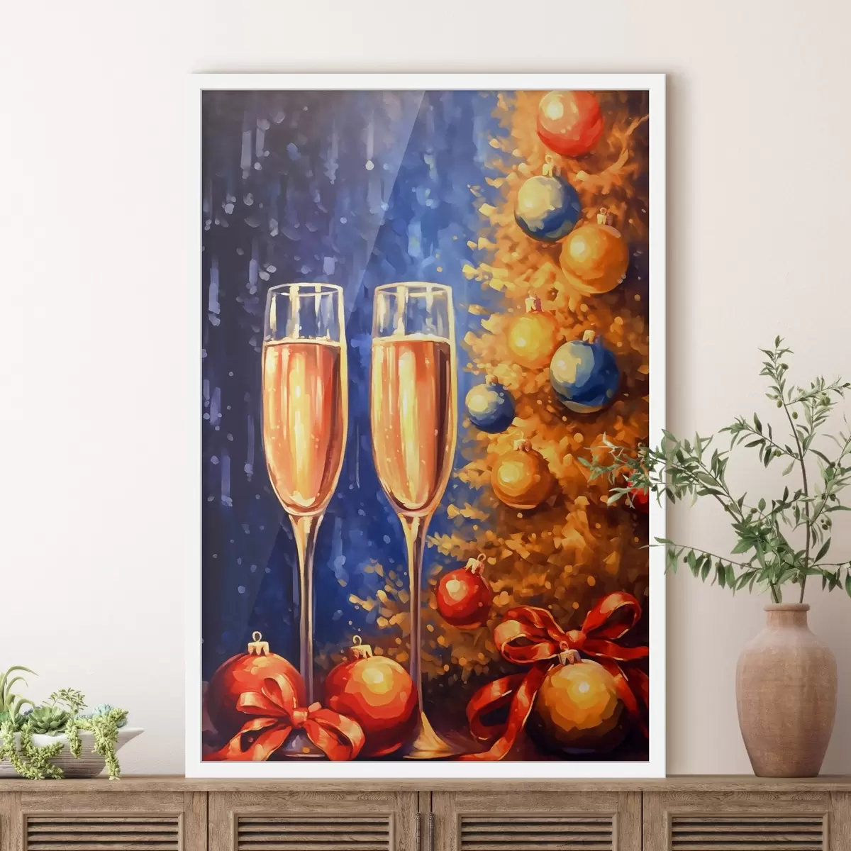 Poster Bicchiere festivo vicino all'albero di Natale Nr f42157