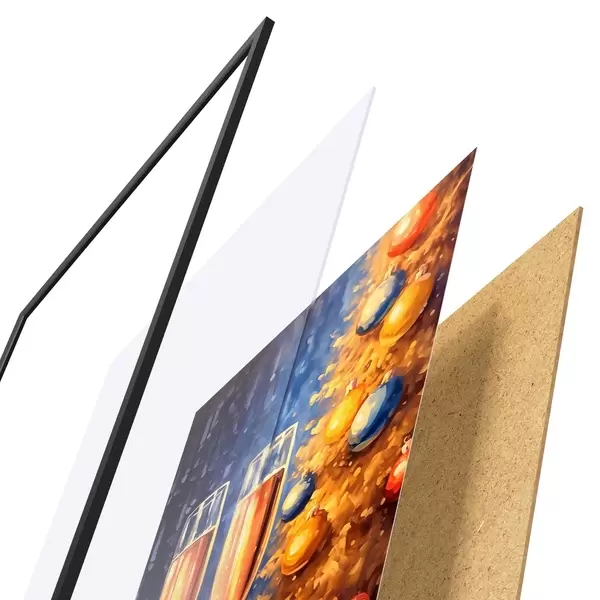 Il poster è composto da cornice, plexiglass, immagine stampata e supporto in truciolato. Il poster può essere immediatamente appeso alla parete grazie ai supporti sul retro.