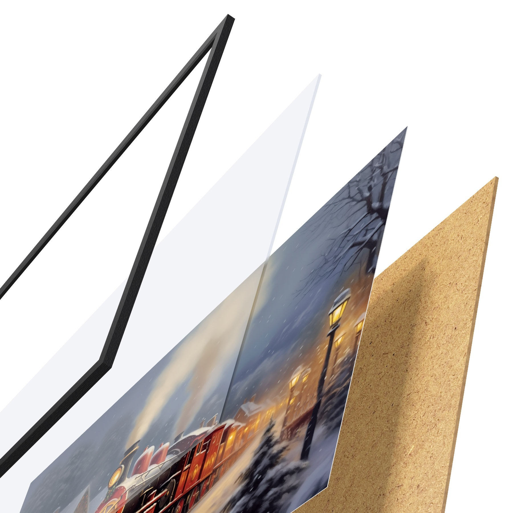 Il poster è composto da cornice, plexiglass, immagine stampata e supporto in truciolato. Il poster può essere immediatamente appeso alla parete grazie ai supporti sul retro.