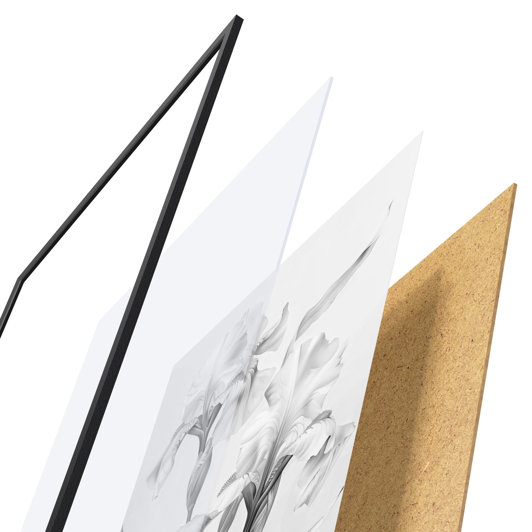 Il poster è composto da cornice, plexiglass, immagine stampata e supporto in truciolato. Il poster può essere immediatamente appeso alla parete grazie ai supporti sul retro.