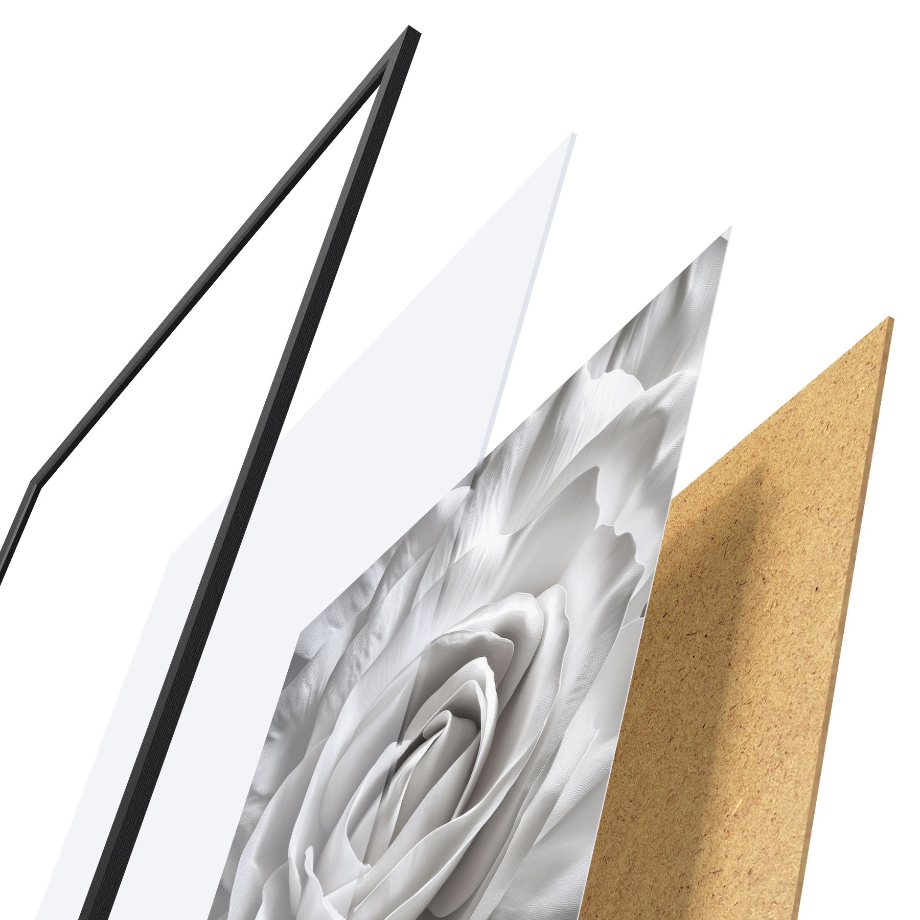 Il poster è composto da cornice, plexiglass, immagine stampata e supporto in truciolato. Il poster può essere immediatamente appeso alla parete grazie ai supporti sul retro.