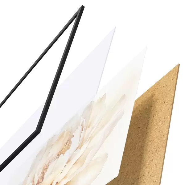 Il poster è composto da cornice, plexiglass, immagine stampata e supporto in truciolato. Il poster può essere immediatamente appeso alla parete grazie ai supporti sul retro.