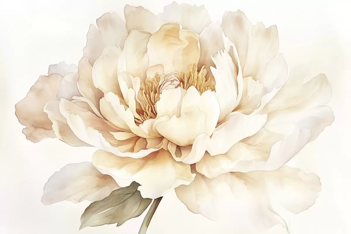 Poster Bellissimo fiore di peonia, colori tenui e cremosi, stile acquerello Nr f42201