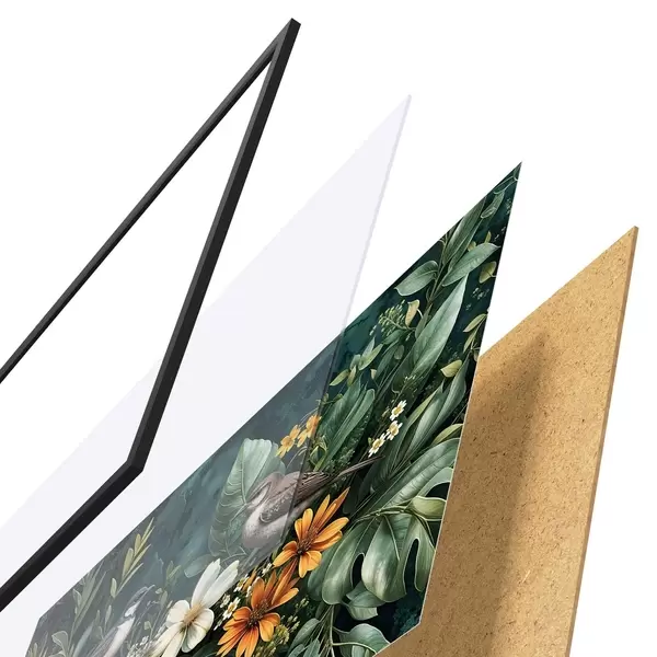 Il poster è composto da cornice, plexiglass, immagine stampata e supporto in truciolato. Il poster può essere immediatamente appeso alla parete grazie ai supporti sul retro.