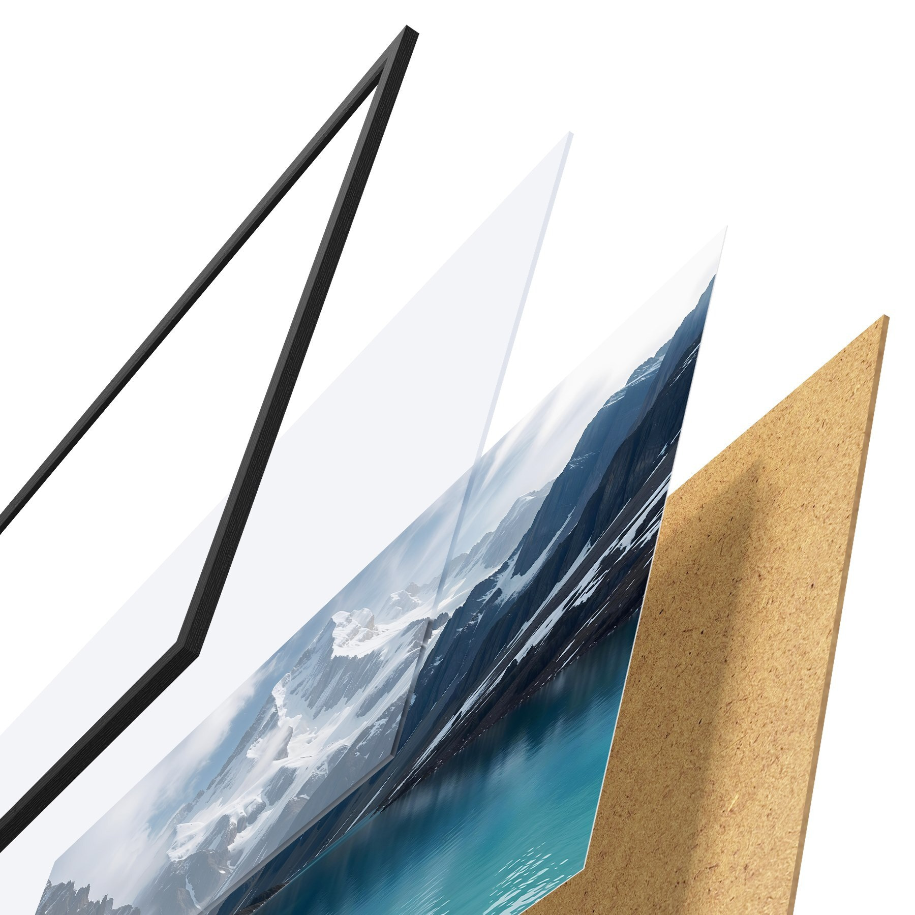 Il poster è composto da cornice, plexiglass, immagine stampata e supporto in truciolato. Il poster può essere immediatamente appeso alla parete grazie ai supporti sul retro.