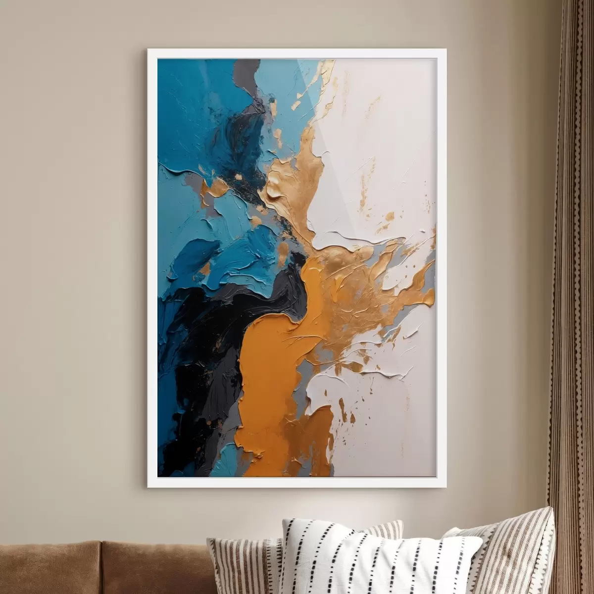 Poster Pittura astratta con colori blu, bianco e giallo Nr f42254