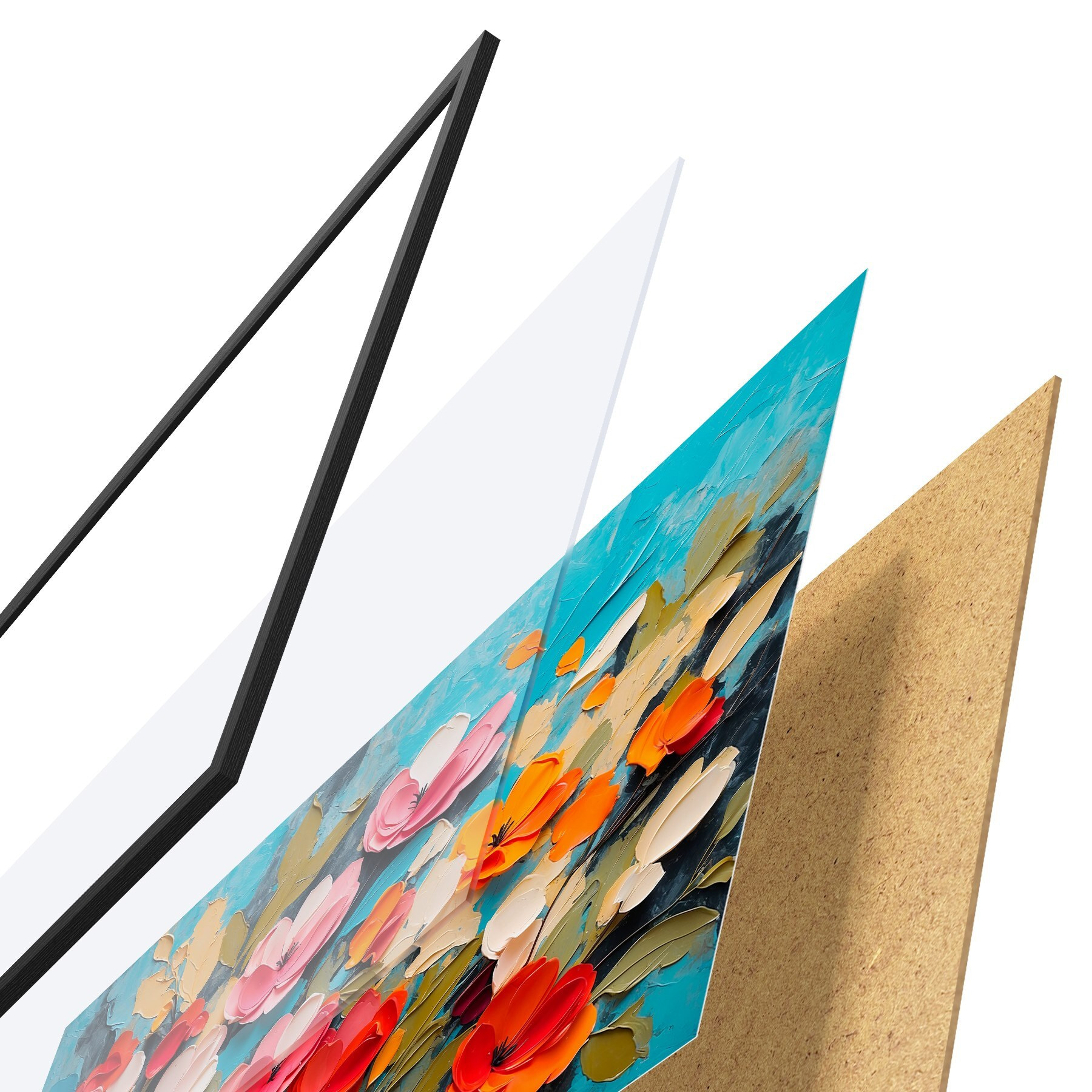 Il poster è composto da cornice, plexiglass, immagine stampata e supporto in truciolato. Il poster può essere immediatamente appeso alla parete grazie ai supporti sul retro.