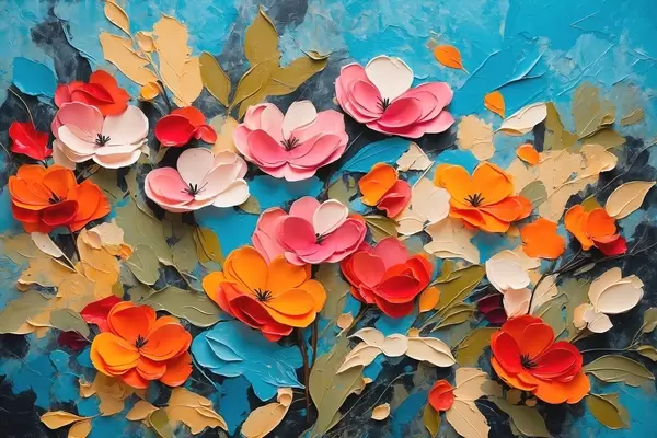 Poster Fiori e foglie su sfondo blu Nr f42255