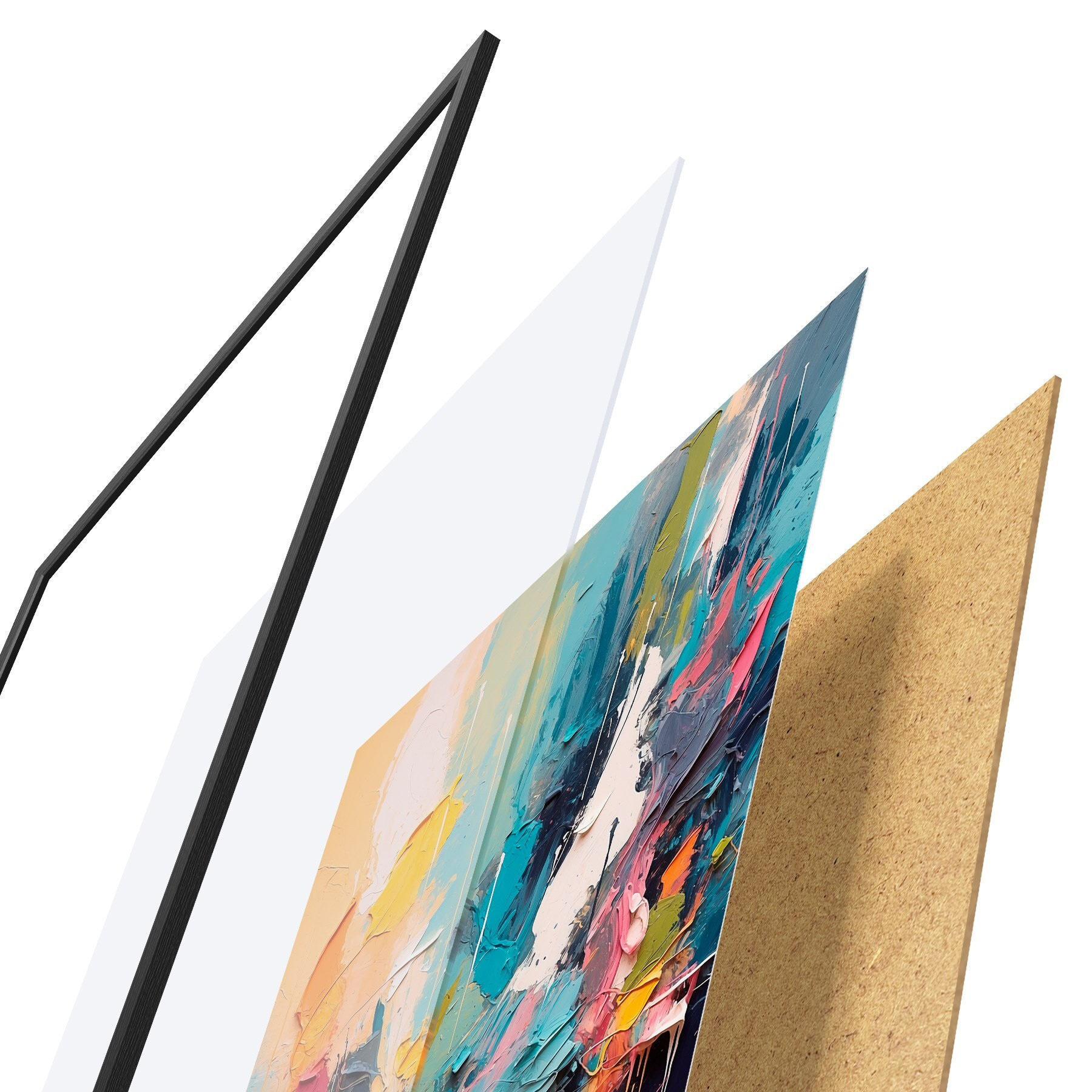 Il poster è composto da cornice, plexiglass, immagine stampata e supporto in truciolato. Il poster può essere immediatamente appeso alla parete grazie ai supporti sul retro.