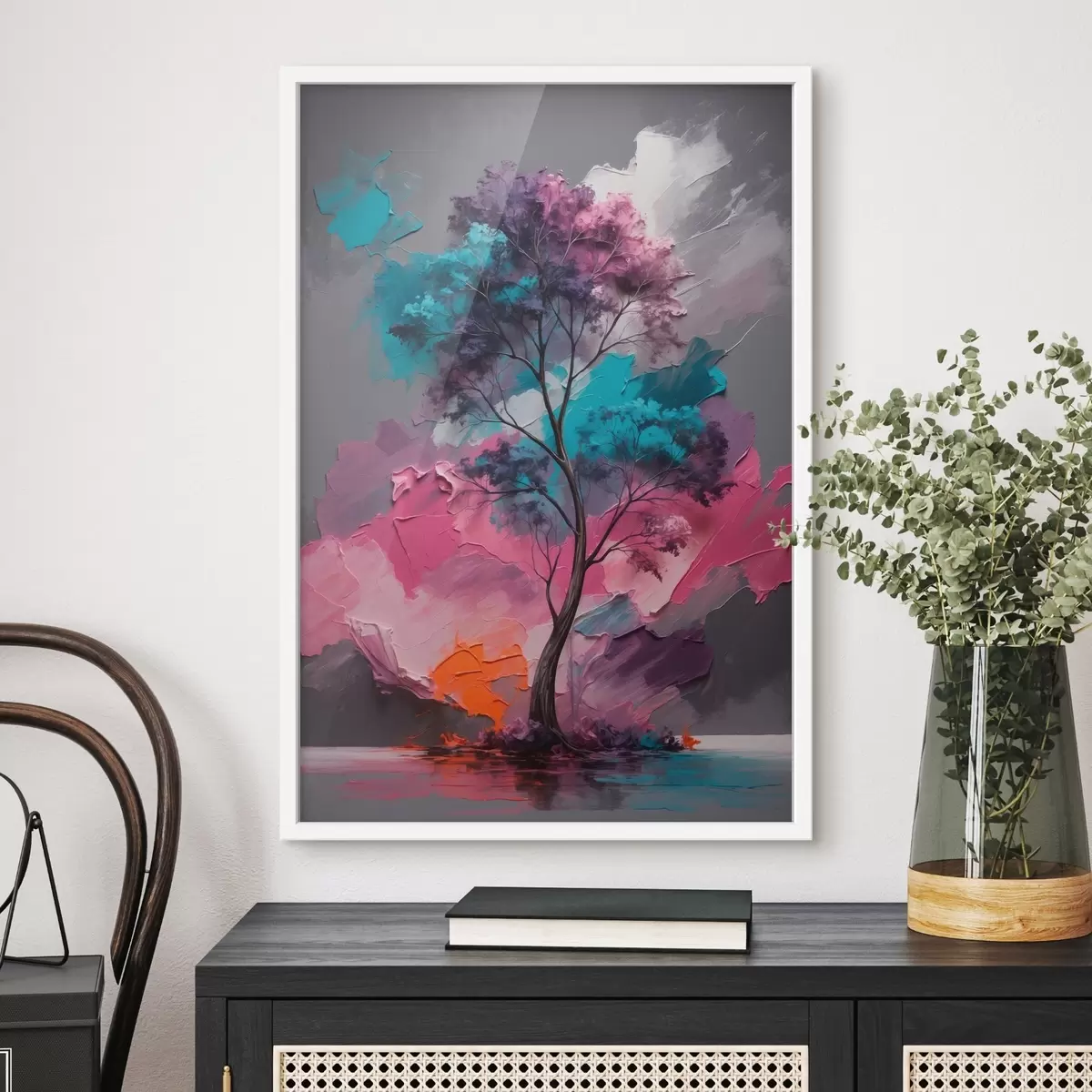 Poster Albero su sfondo grigio-rosa Nr f42262