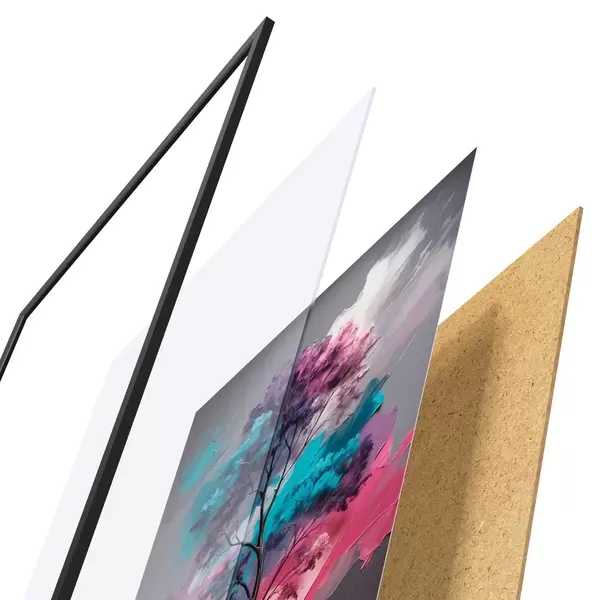 Il poster è composto da cornice, plexiglass, immagine stampata e supporto in truciolato. Il poster può essere immediatamente appeso alla parete grazie ai supporti sul retro.