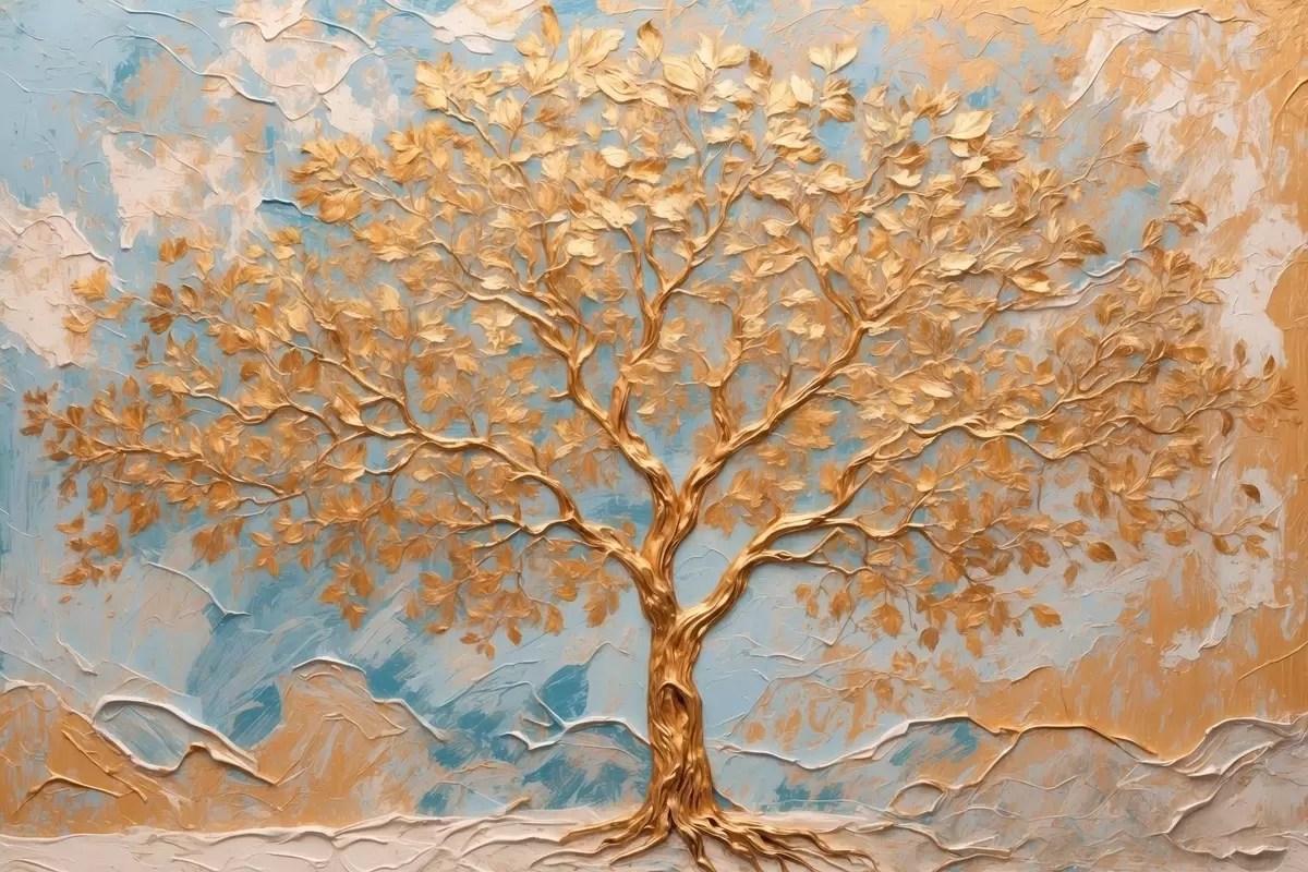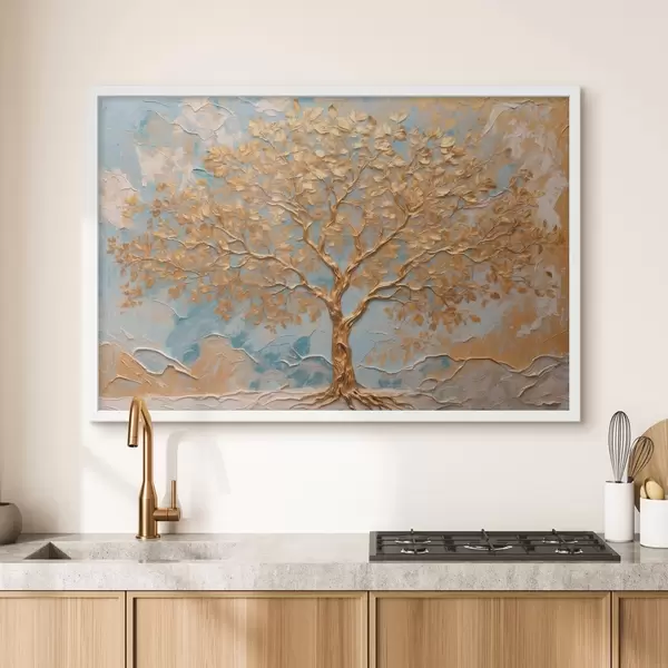 Poster Albero giallo su sfondo bianco-blu Nr f42266