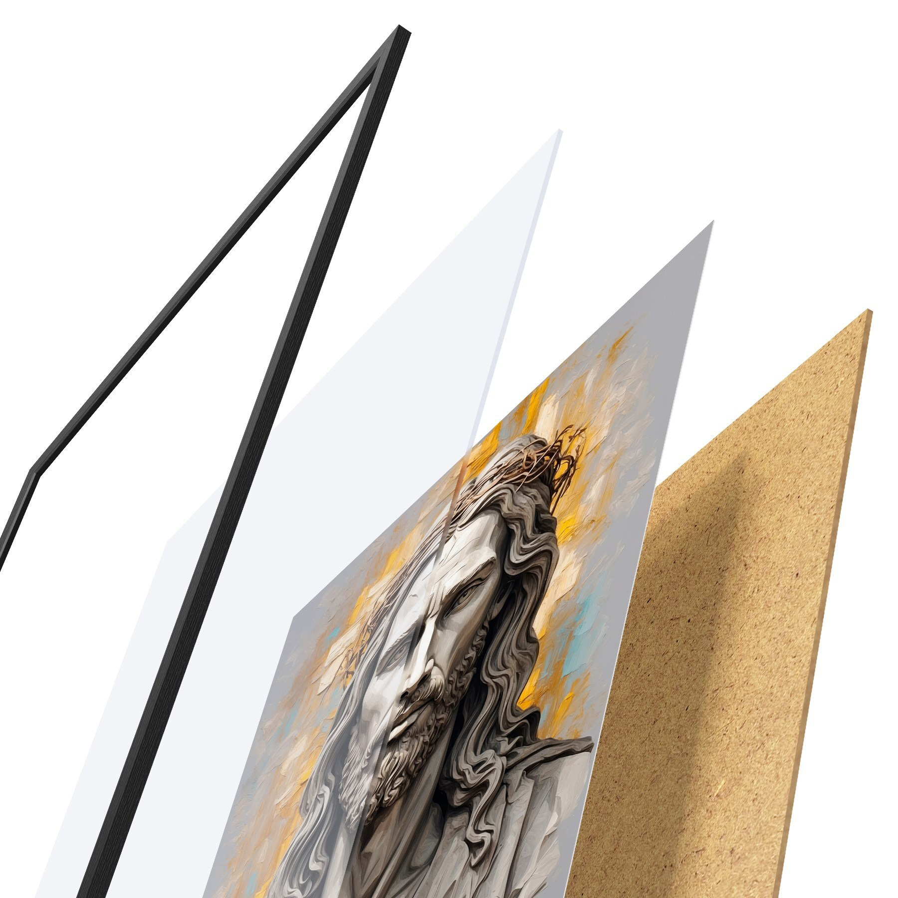 Il poster è composto da cornice, plexiglass, immagine stampata e supporto in truciolato. Il poster può essere immediatamente appeso alla parete grazie ai supporti sul retro.