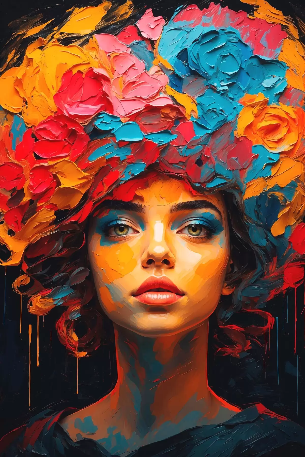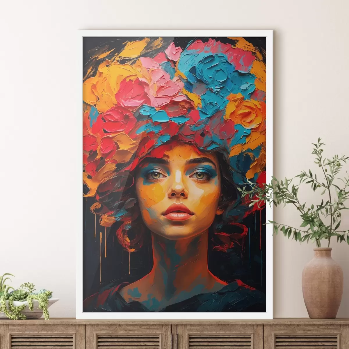 Poster Ragazza con fiori sulla testa in stile pittura ad olio Nr f42271