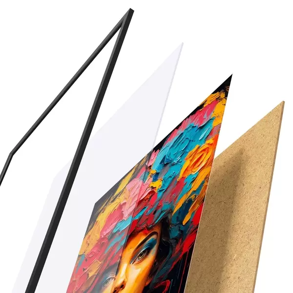Il poster è composto da cornice, plexiglass, immagine stampata e supporto in truciolato. Il poster può essere immediatamente appeso alla parete grazie ai supporti sul retro.