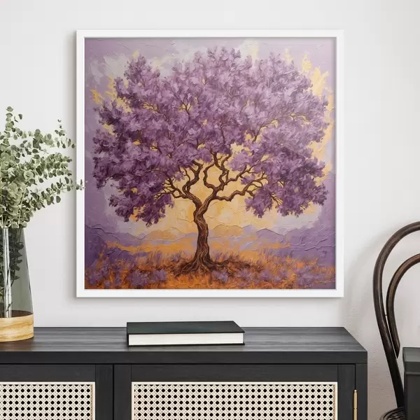 Poster Albero viola su sfondo giallo-filotico Nr f42272