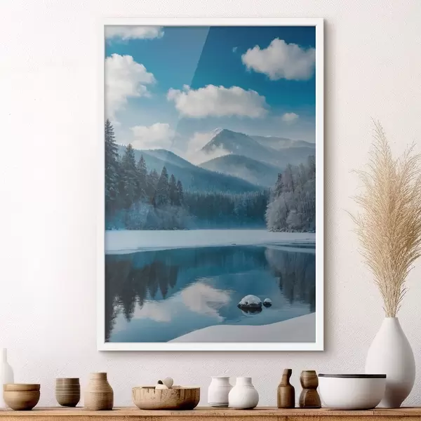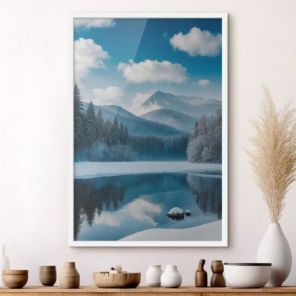 Poster Vista sulla foresta invernale e sulle montagne Nr f42278