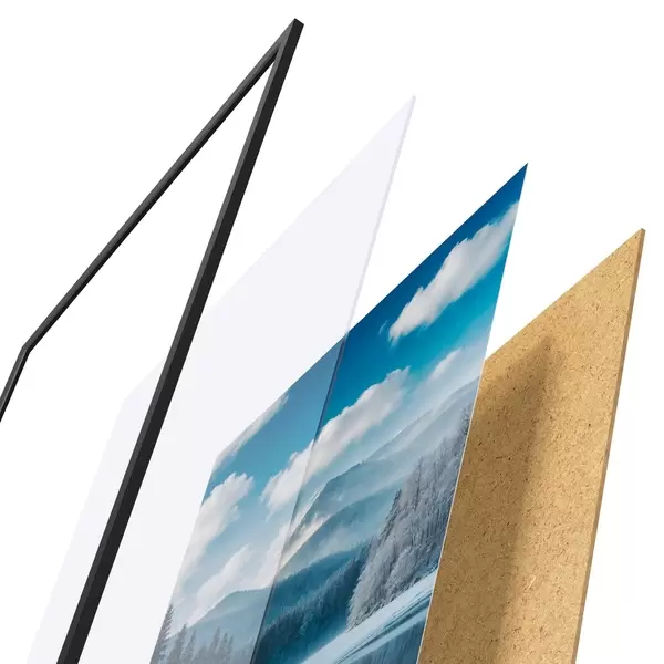 Il poster è composto da cornice, plexiglass, immagine stampata e supporto in truciolato. Il poster può essere immediatamente appeso alla parete grazie ai supporti sul retro.